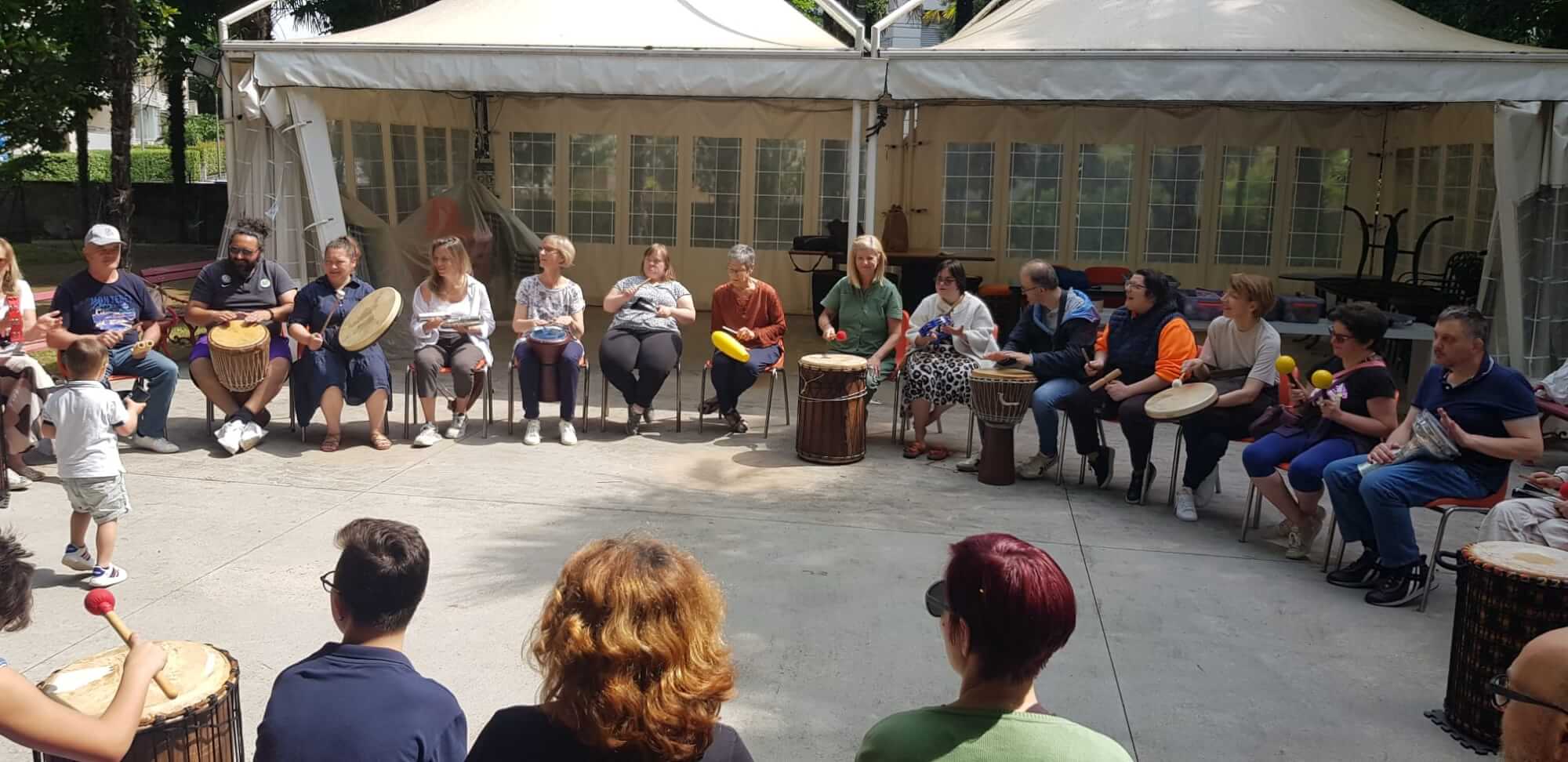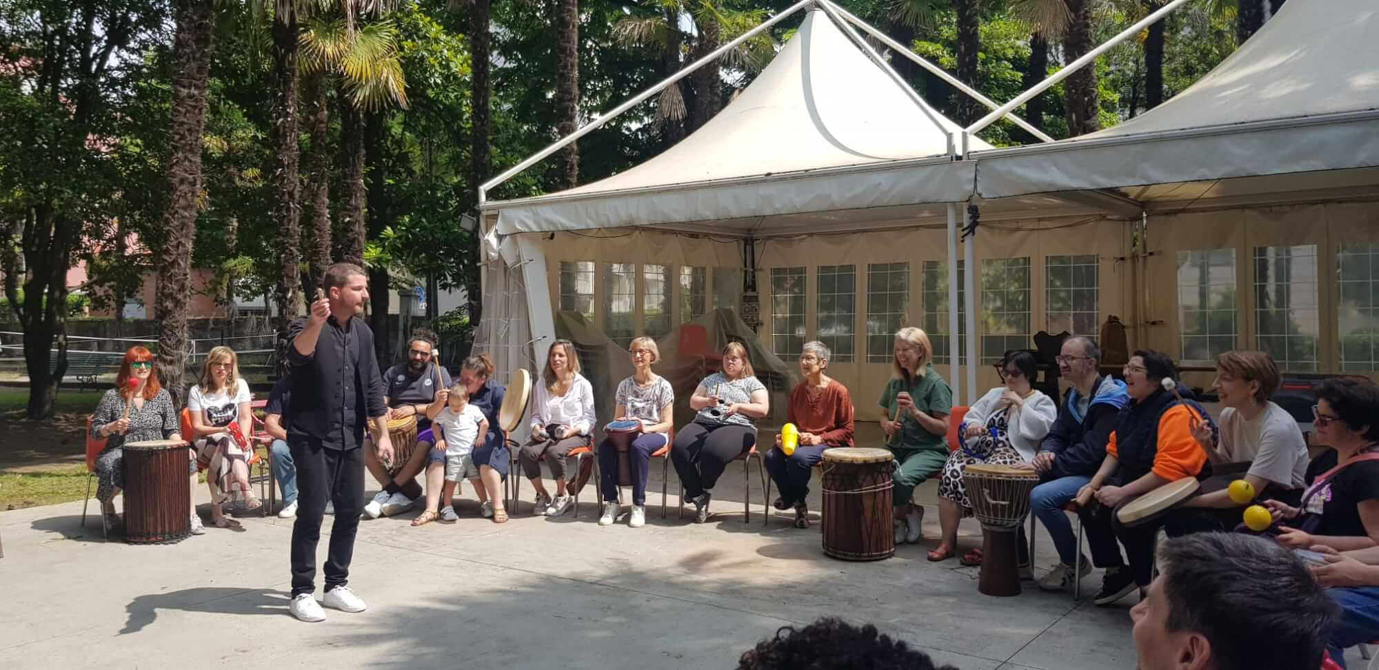 Un incontro carico di entusiasmo che ha coinvolto tutti i numerosi partecipanti e che ha unito le tecniche del DRUM CIRCLE (cerchio di percussioni facilitato) con quelle della MUSICOTERAPIA.