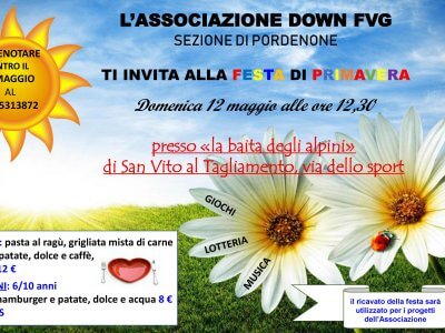 L’ASSOCIAZIONE DOWN FVG di PORDENONE TI INVITA ALLA FESTA DI PRIMAVERA DOMENICA 12 MAGGIO ALLE ORE 12.30 presso la baita...