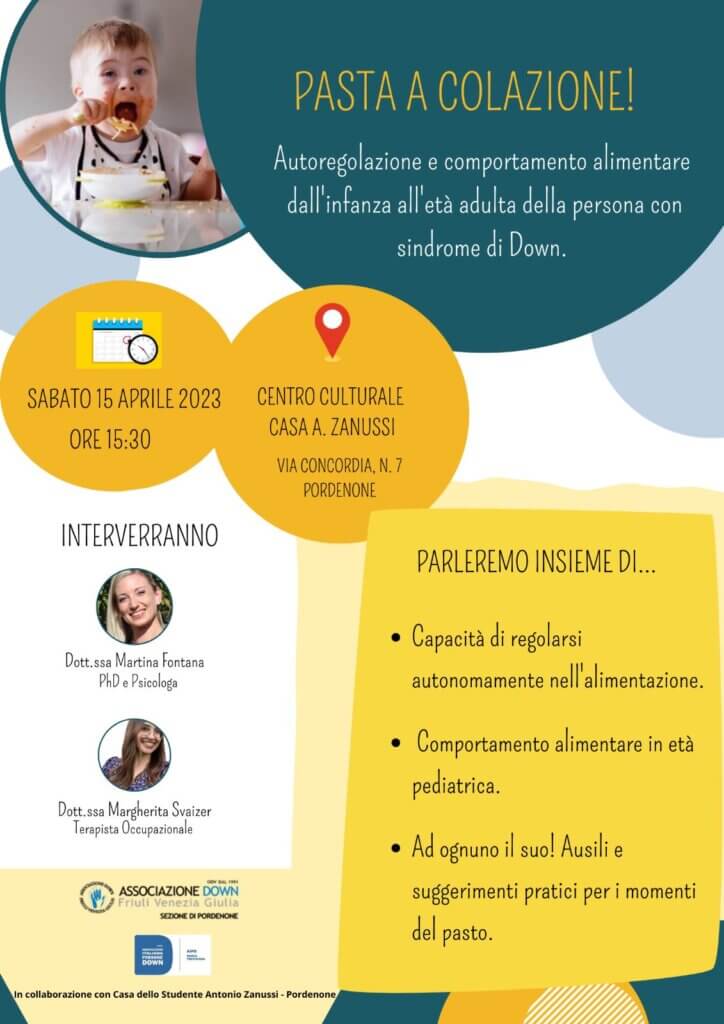 Pasta a Colazione! Autoregolazione e comportamento alimentare dall’infanzia all’età adulta della persona con sindrome di Down SABATO 15 APRILE ore 15.30 in occasione...